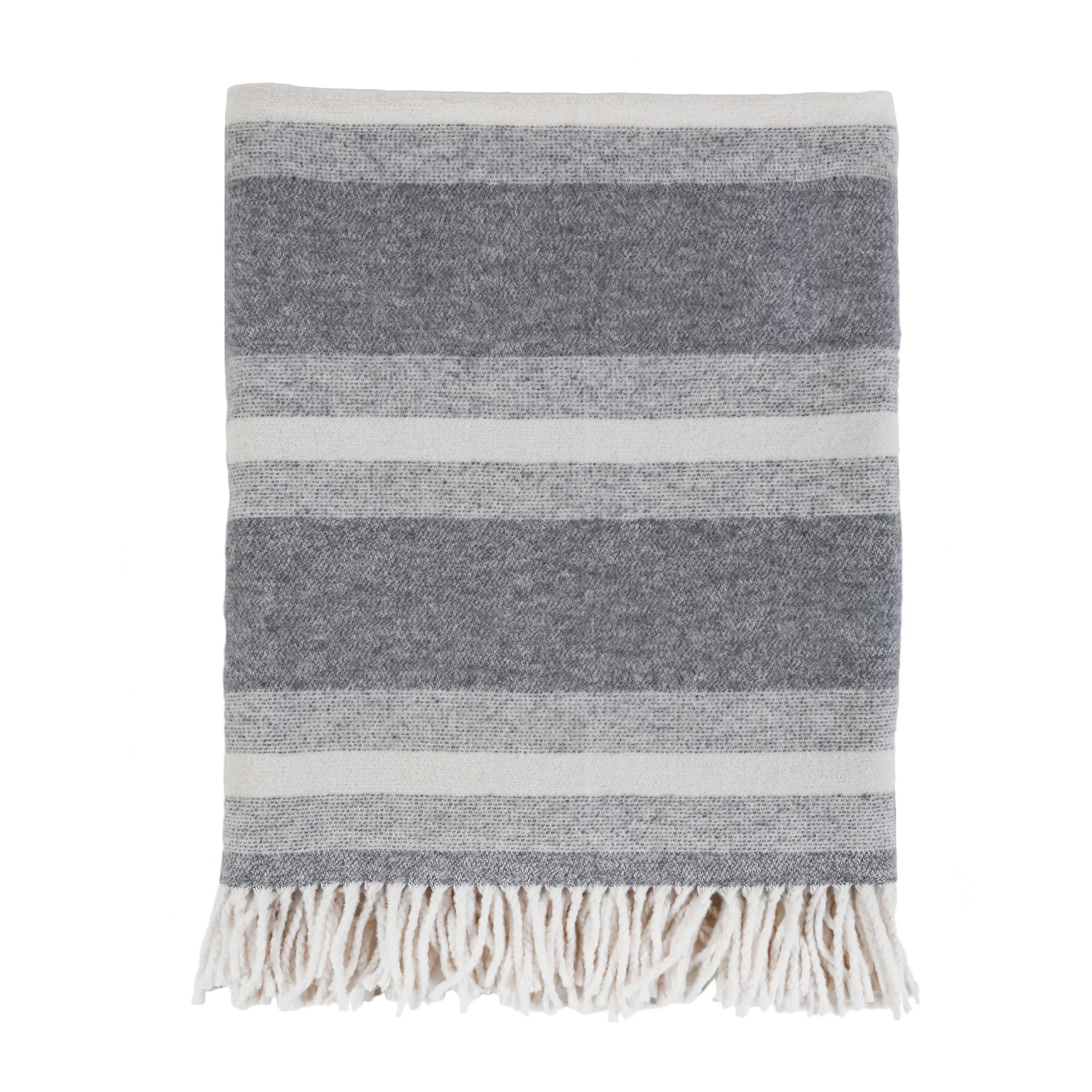 Cozy up in this plush blanket collection and you'll never want to get out of bed. The Alpine is made of 100% soft combed cotton with a series of stripes in grey hues, and soft tassels on the top and bottom edges.