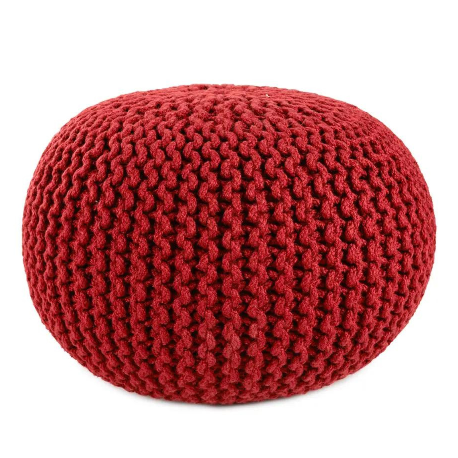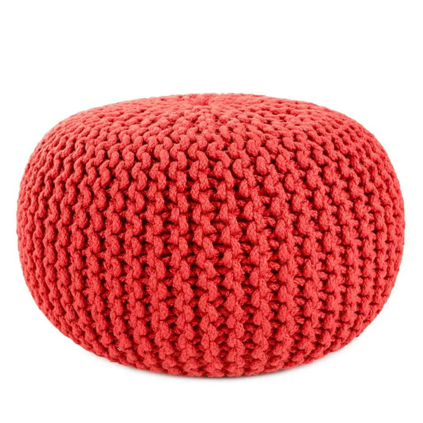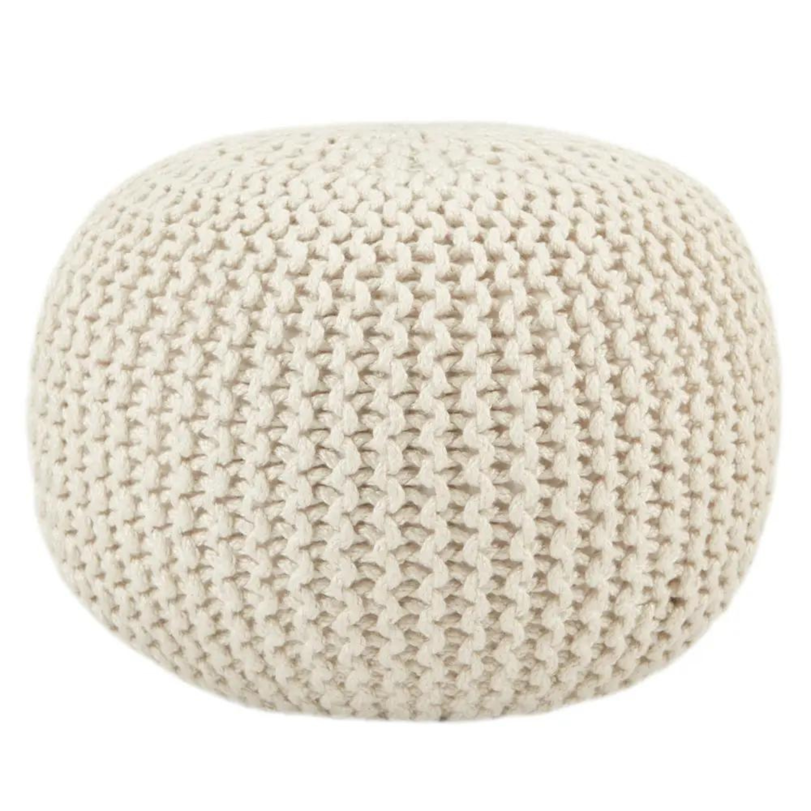 Casual and contemporary, this indoor-outdoor pouf features a chunky knit weave for inviting style and handmade appeal. Perfect as a comfy ottoman or convenient as extra seating in a living room or on a patio, this pouf in grey or white provides a versatile accent.