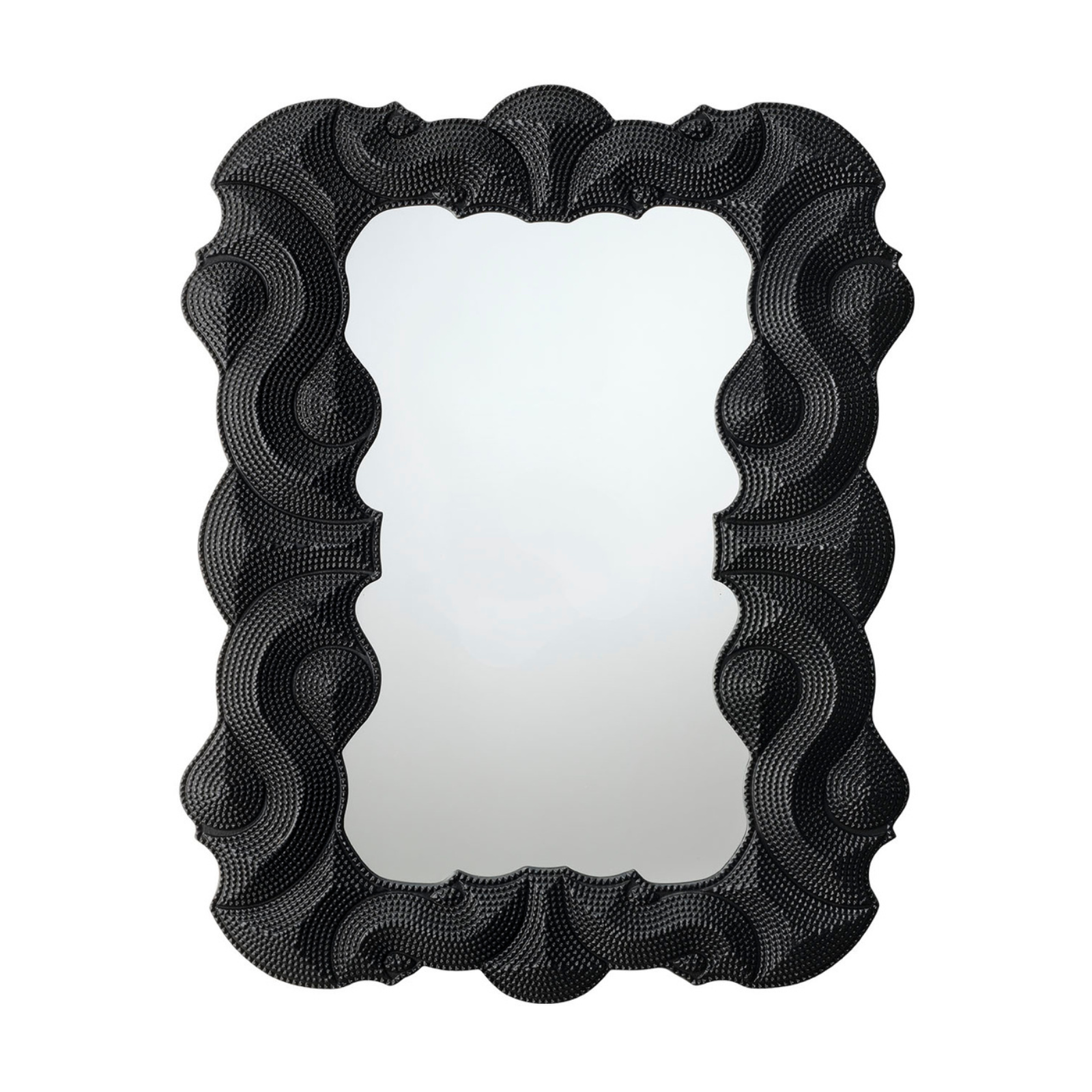 This bold black wall mirror is expertly designed and artisan-crafted from strong, lightweight resin. Its richly textured frame is dramatically decorative and full of exuberance, as if in a sweet spot between fairy tales and rock and roll! It can be hung horizontally or vertically to perfectly suit your space.