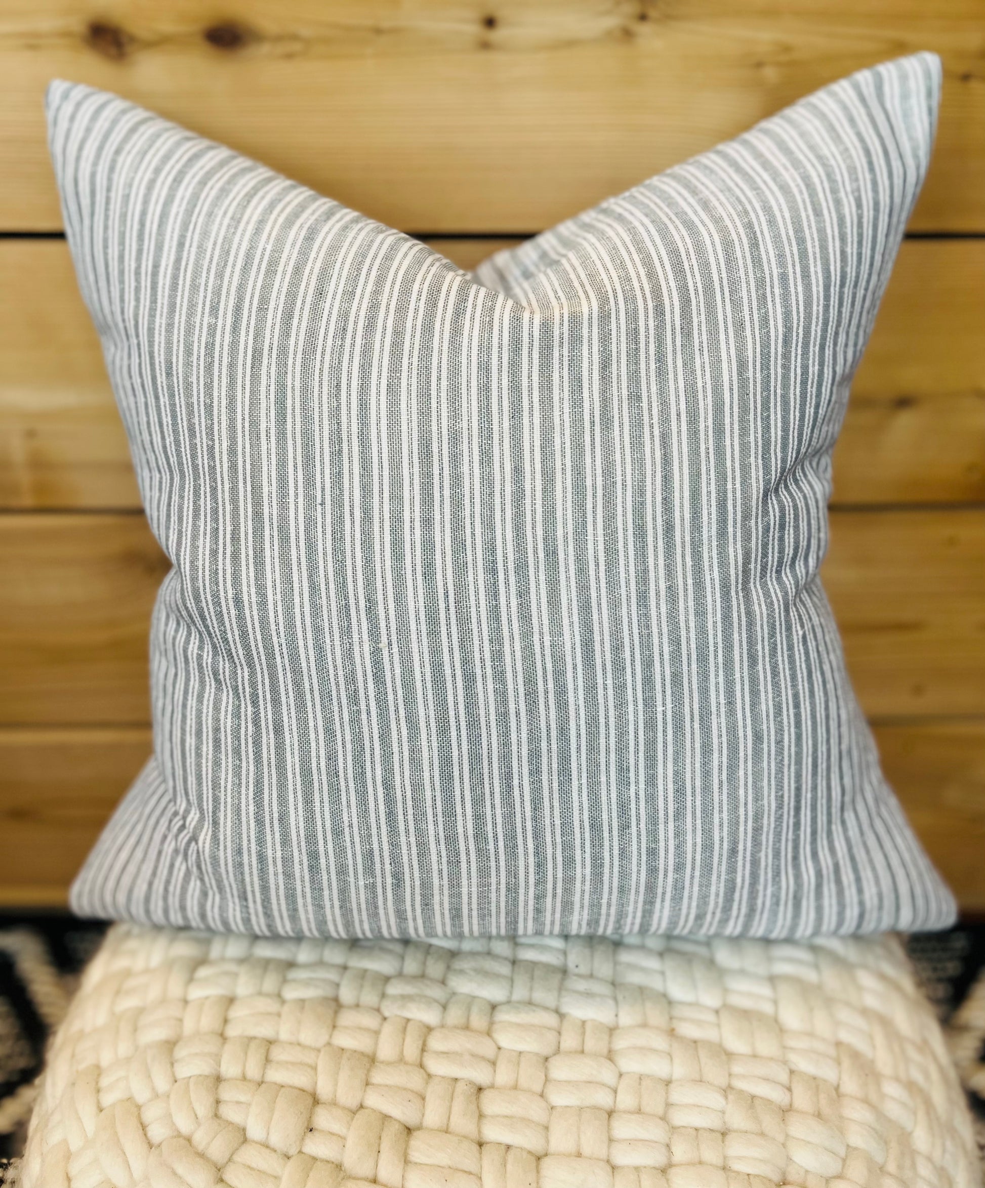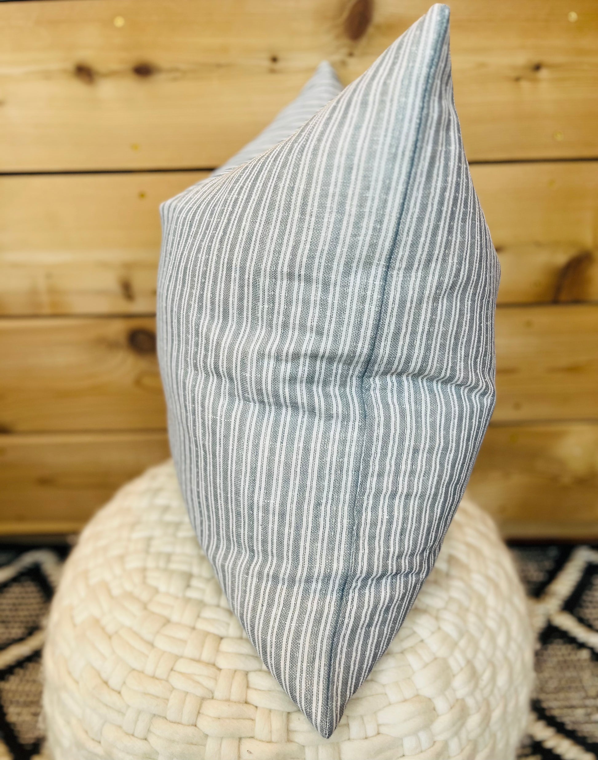 Casual with a touch of the traditional, this pillow features soft blue stripes against a crisp white background. Refresh any style or setting with this pillow for classic charm and subtle color. A luxurious feather blend insert offers premium comfort. Two styles available- lumbar and square.