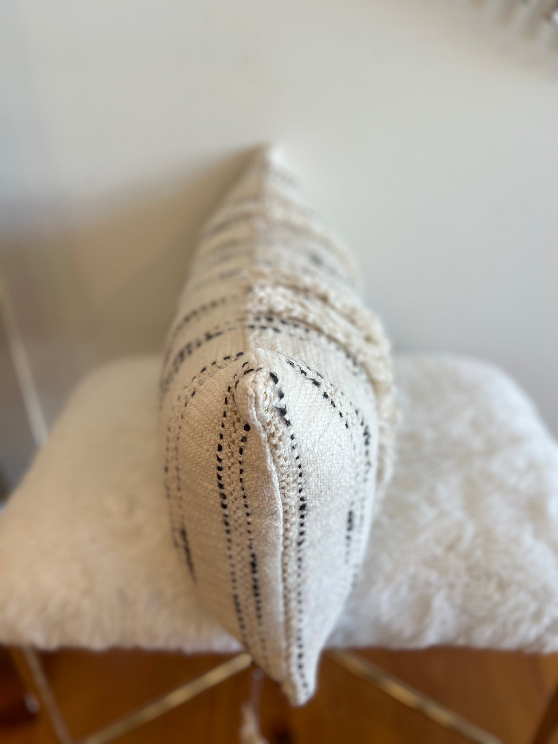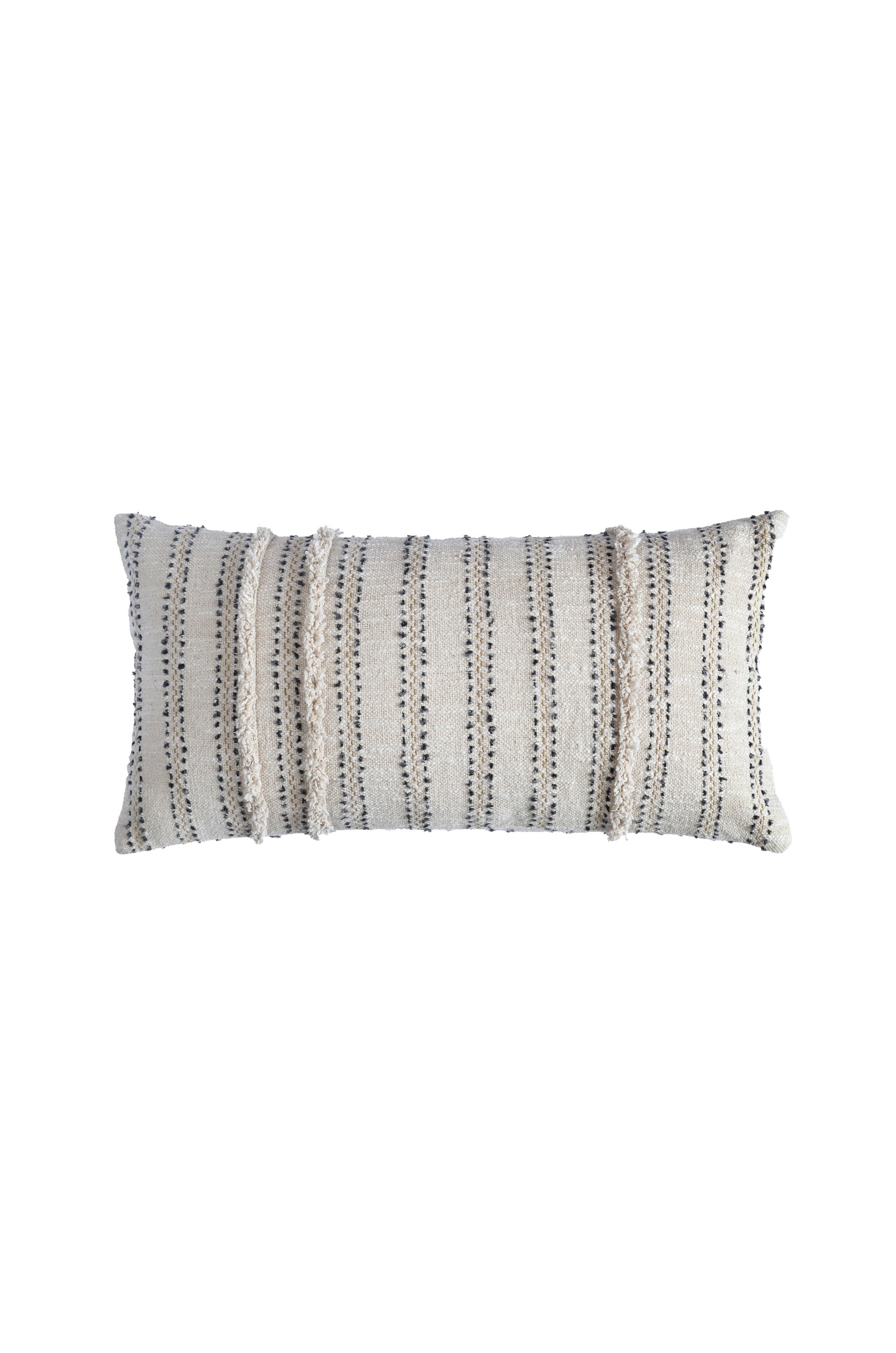 An interesting play of texturous stripes, this pillow is a cotton crafted cushion with distinctive slubbiness. Enclosed with a brass zipper, it is a great addition to modern decor
