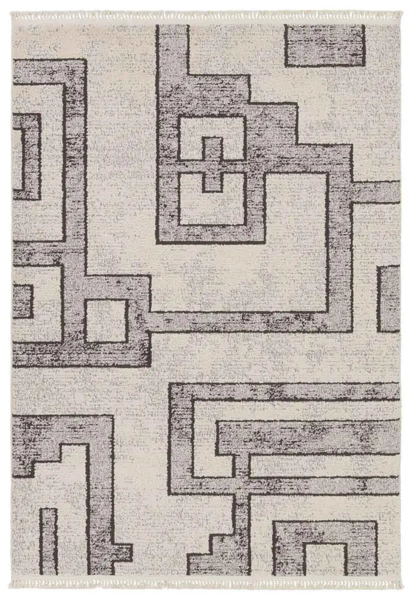 The Lore collection introduces an assortment of modern Moroccan motifs and unique texture that grounds spaces with statement-making style. The Bungalow area rug features a distressed geometric design, cut and looped pile, and cream, fringe. The contrasting neutral tones of gray and cream offer the perfect anchor to contemporary design. This indoor rug thrives in medium and low traffic spaces of the home such as bedrooms, dining areas, formal living rooms, and guest areas.