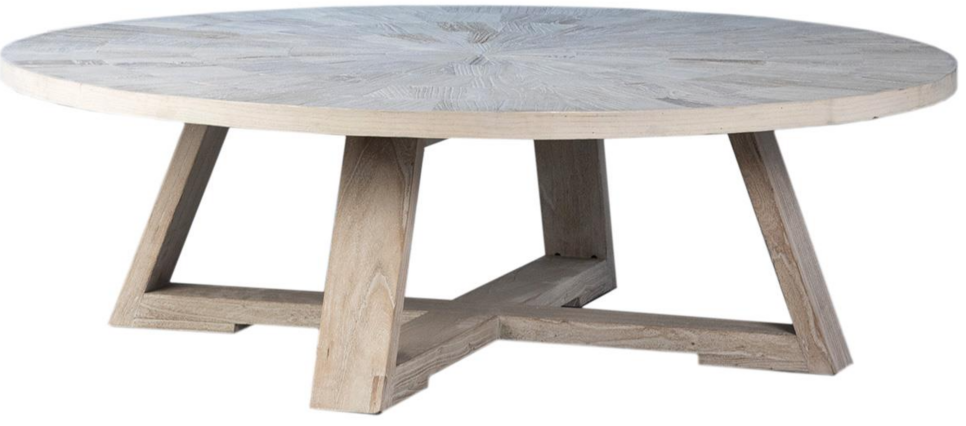 Made with reclaimed elm wood and a light warm wash finish, this coffee table makes for a warm addition to any space.
