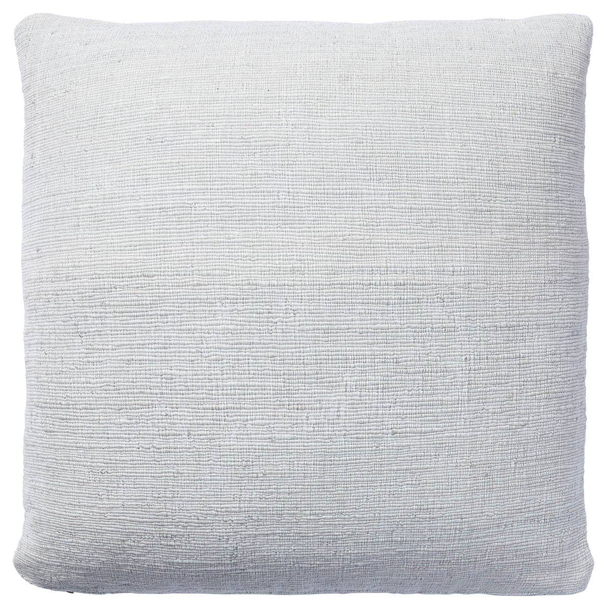 Traditionally, the warp yarn is the framework over which the weft yarn is woven to create a pattern, but in the Mirth pillow they are given an equal emphasis. Inspired by the foundation of handcrafted rugs, this throw pillow provides subtle texture in a cool light blue tone. The viscose and cotton blend lends softness and comfort to any indoor space.