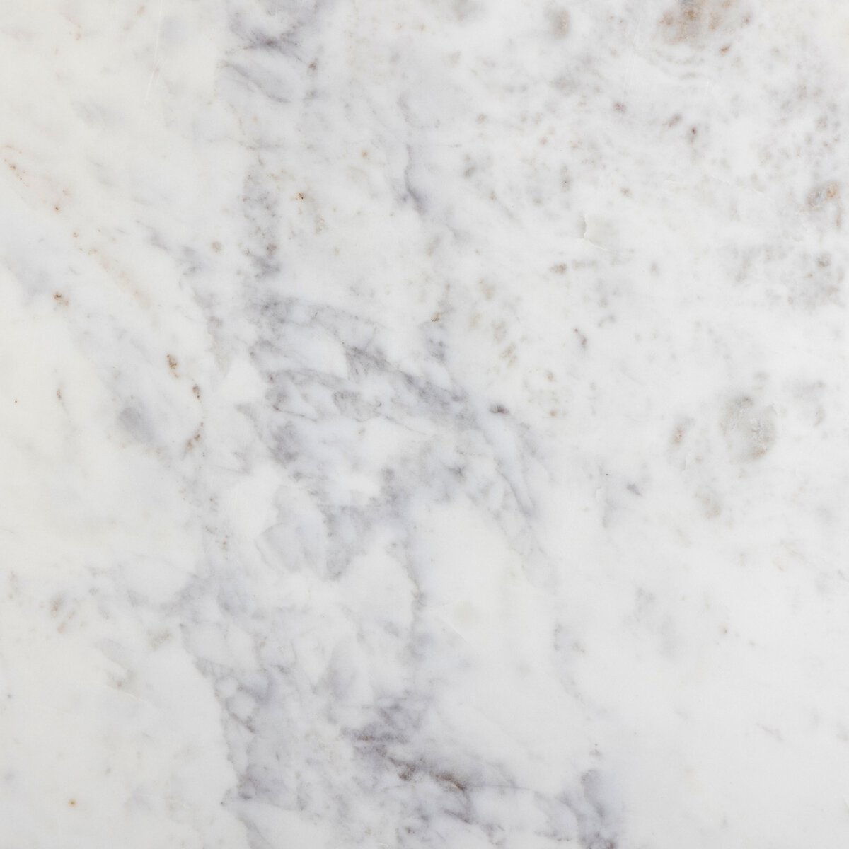 A light-finished oak base and a juxtaposing white marble tabletop lend natural style and substance to this round dining table.