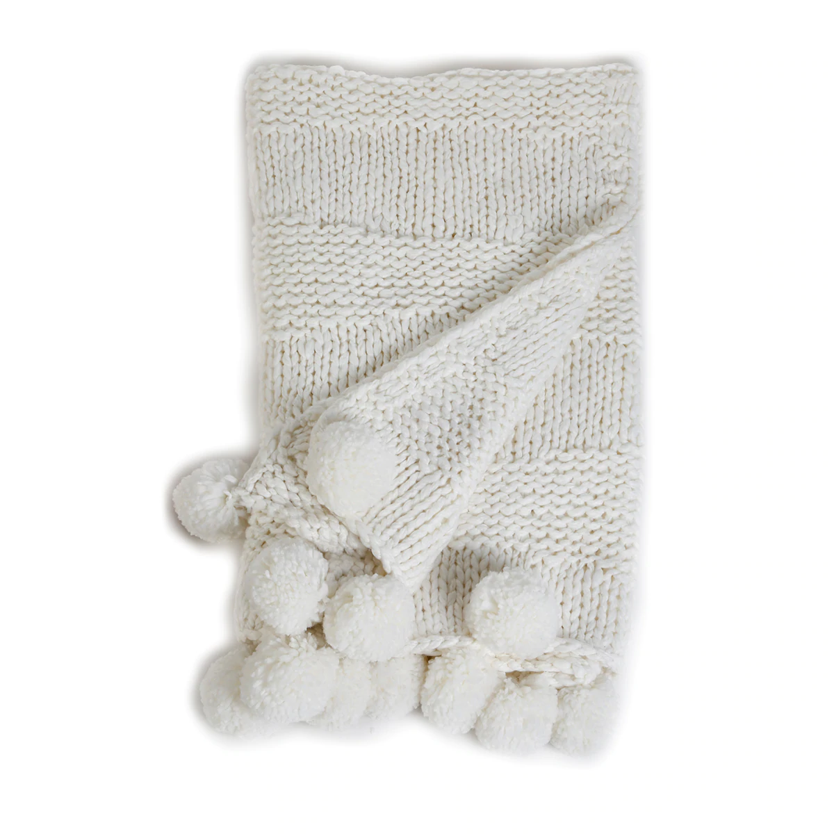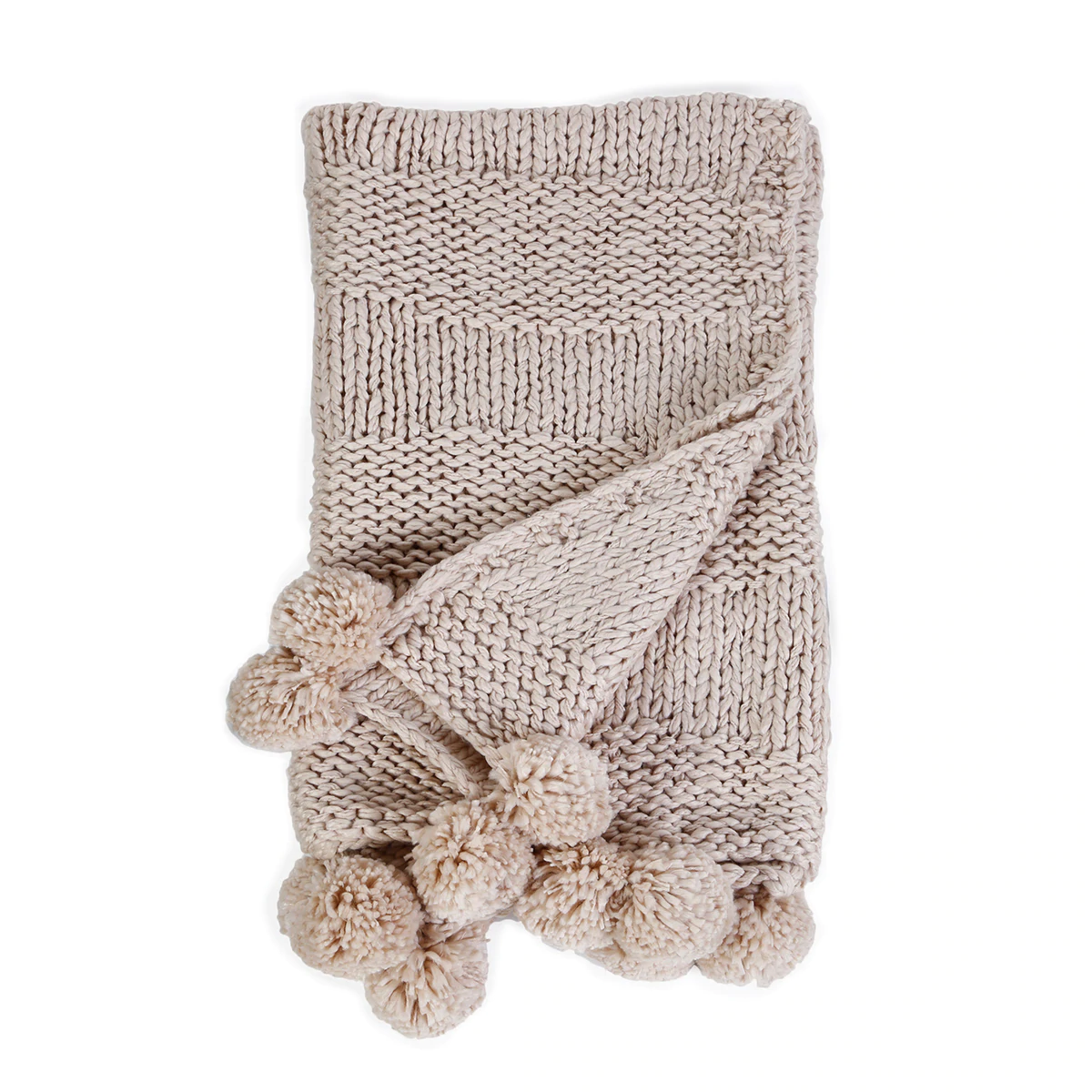 Extra chunky with alternating weaves and fluffy pom poms, the Oulu throw is perfect for cozying up in.