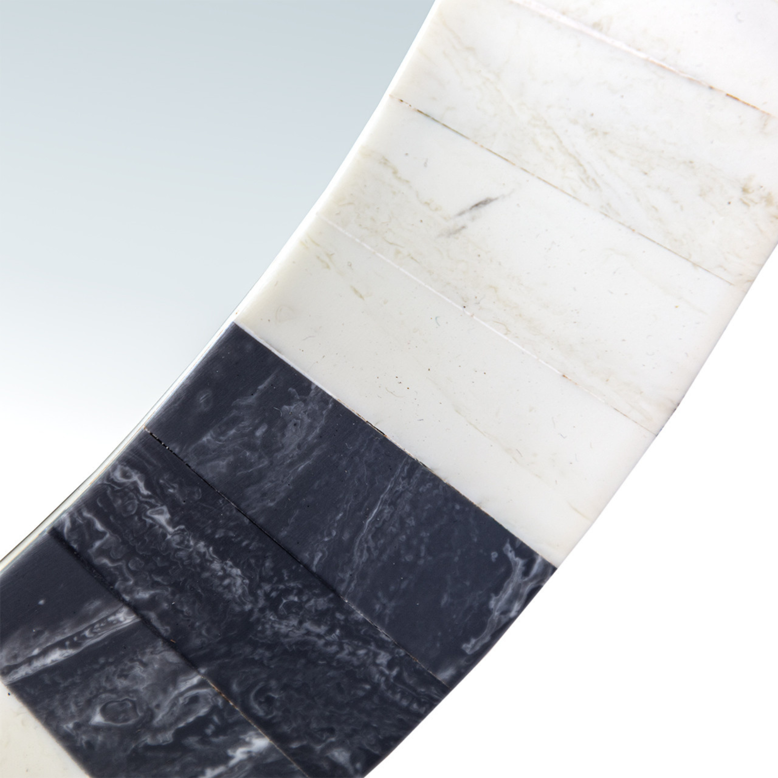This sophisticated 24-inch diameter mirror features a beautifully crafted border with alternating black and crisp white segments, creating a captivating geometric pattern that adds visual depth and architectural interest to any room. The generous proportions of 24 inches in height, and a slim 0.5-inch profile make this mirror an ideal statement piece for entryways, living spaces, bathrooms, or bedrooms. Crafted from premium resin and MDF materials, the durable construction ensures lasting beauty while the multicolor striped frame design offers versatile decorating possibilities that complement both contemporary interior styles. The beveled mirror surface provides crystal-clear reflections while the alternating dark and light border segments create a subtle yet dramatic frame effect that draws the eye and enhances your wall decor.Â