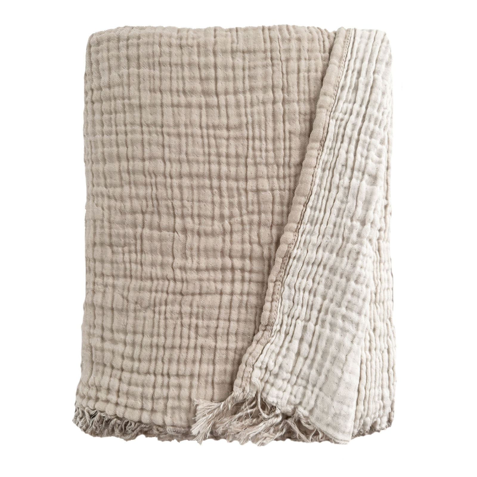 The Crinkled Turkish Cotton Cuddle Blanket is made with soft crinkled cotton which is naturally breathable. This blanket will style effortlessly from the living room to the bedroom and is finished with a self fringe. The Crinkled yarns are woven with two tones.